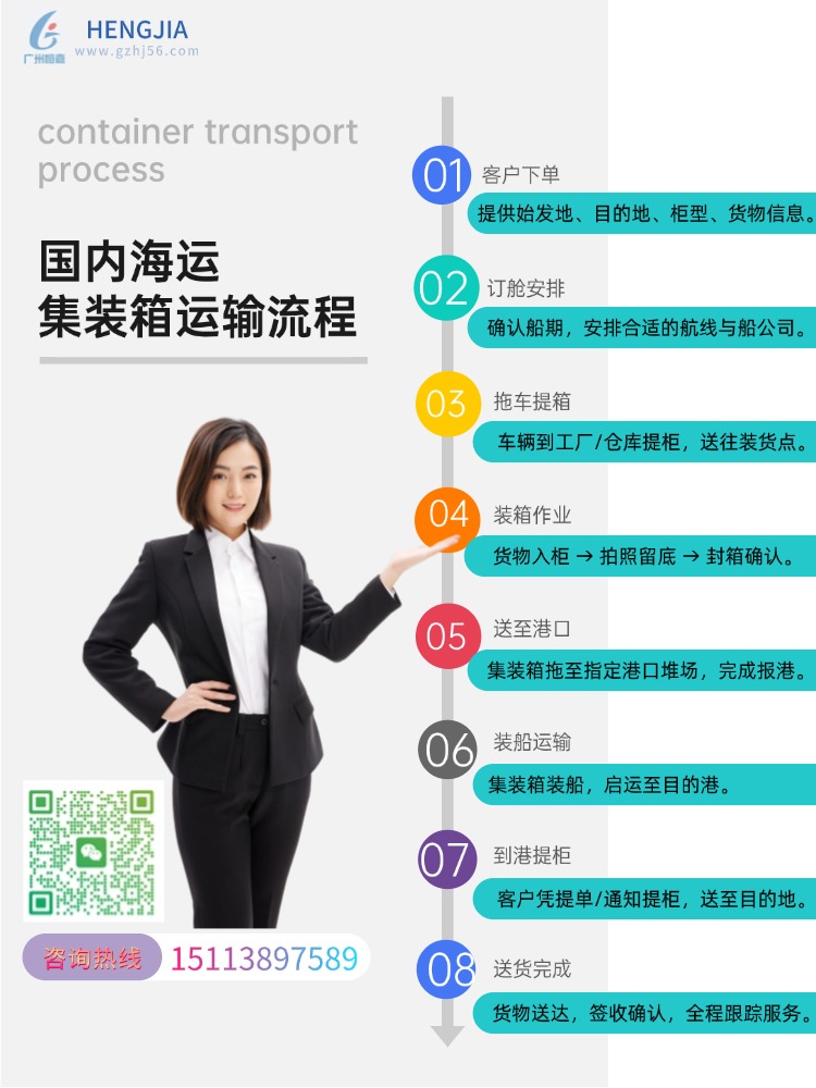五、服务流程说明提柜 → 装柜拍照 → 港区交柜 → 出运 → 日照换装配送 → 签收 整体来看,中山到日照的内贸海运方式能有效控制成本,为产业链上游提供长期可执行的物流方案。 推荐阅读: 《内贸海运常见问答》 《集装箱基础知识》 《获取定制报价》